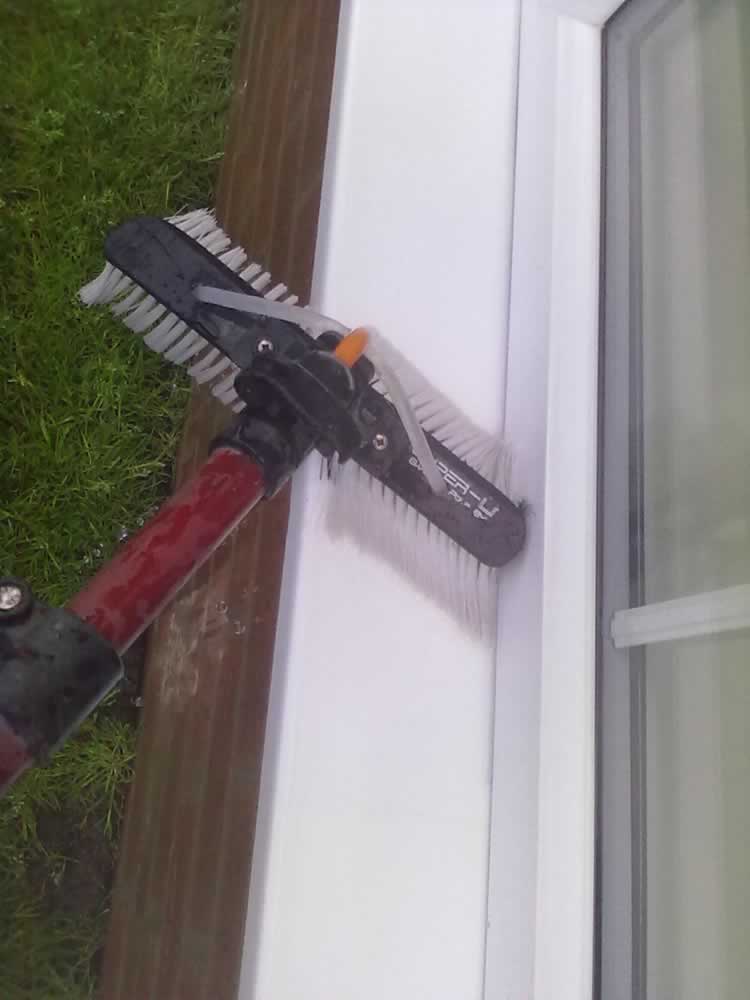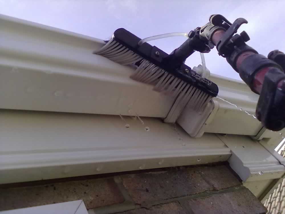 Gutters, fascia & soffit can be cleaned with our high reach "water fed pole" system without using ladders.